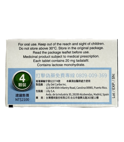 犀利士/Cialis 禮來台廠 36小時效果 堅挺壯陽20mg/4粒入 | 大樹藥局官方直營