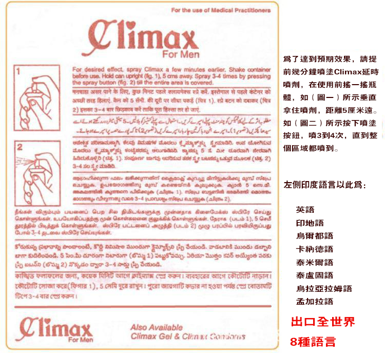 1.climax持久噴劑專為東方男性研制延時效果顯著,持久同時更加威猛!充分滿足幸伴侶!
